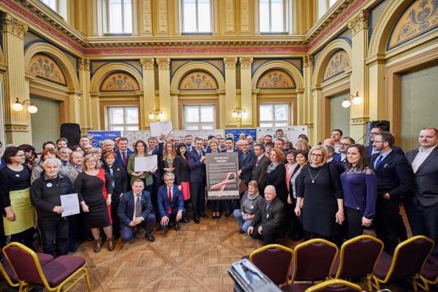 Przedstawiciele organizacji uczestniczących w podpisaniu "Łódzkiej Deklaracji Samorządowej" podkreślali konieczność obrony wartości europejskich i demokratycznych oraz wzywali do obrony samorządów przed zakusami Prawa i Sprawiedliwości.